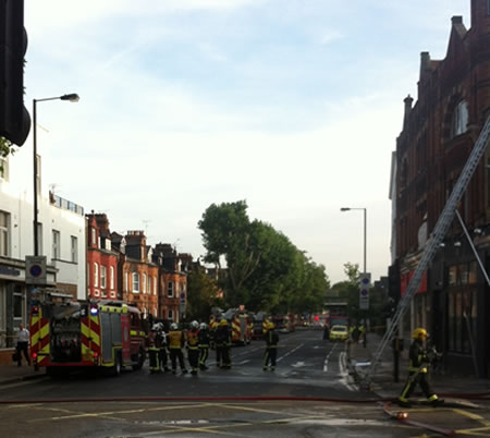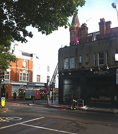 The fire which started in the early hours of this morning has now been put out. It has believed to started in the flats above the coffee shop on the border of Hammersmith and Chiswick.
