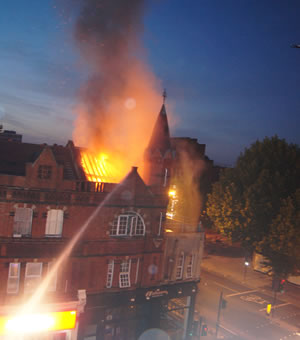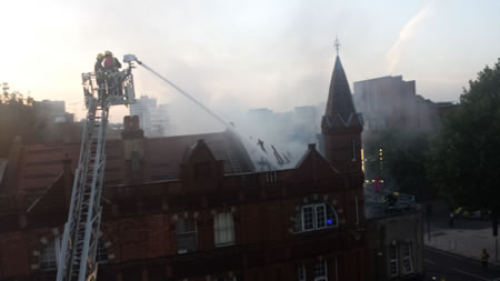 Adam Goodchild who lives opposite the building said, "At five this morning we awoke to the smell of smoke, looked out the window and could see smoke billowing from the roof across the road, called the fire services and ran down to assist.