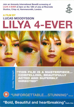 The film, by Swedish film director Lukas Moodysson, has already received great critical acclaim. I tells the story of Lilya, a teenage girl living in dire poverty somewhere in the Russian Federation after being abandoned by her mother. She forms a friendship with an 11 year old boy from another dysfunctional family, and they fantasise together about the future. But one day Lilya meets Andrei, who persuades her to start a new life with him in Sweden. The vulnerable youngster find herself trapped into the growing trade in sex trafficking from Eastern Europe.