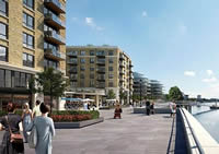 When completed, the development will provide 744 apartments and promises shops and restaurants as well as the new pub plus water sports facilities including a community rowing club based around its pontoon.