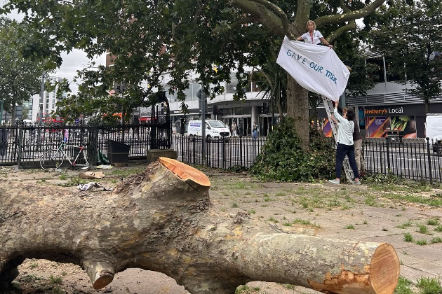 There has been a furious reaction from local people to the cutting down, apparently without warning, of three mature plane trees at the eastern end of Shepherd’s Bush Green.