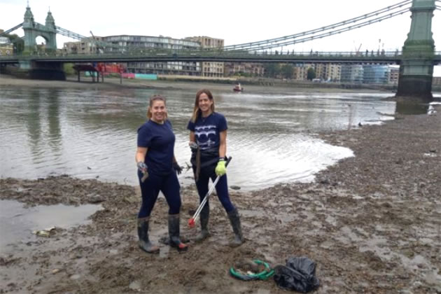 Thames 21 volunteers deal with wet wipes near Hammersmith Bridge. Picture: Thames 21